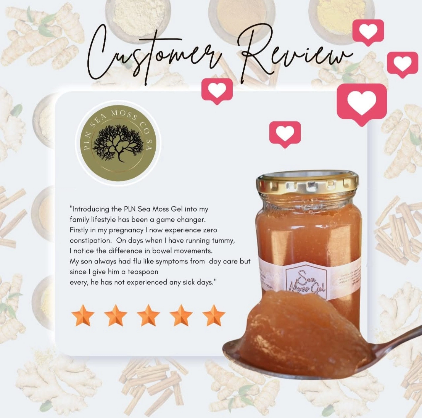 "Introducing the PLN Sea Moss Gel into my family lifestyle has been a game changer. Firstly, in my pregnancy, I now experience zero constipation. On days when I have running tummy, I notice the difference in bowel movements. My son always had flu like symptoms from day care but since I give him a teaspoon every day, he has not experienced any sick days."