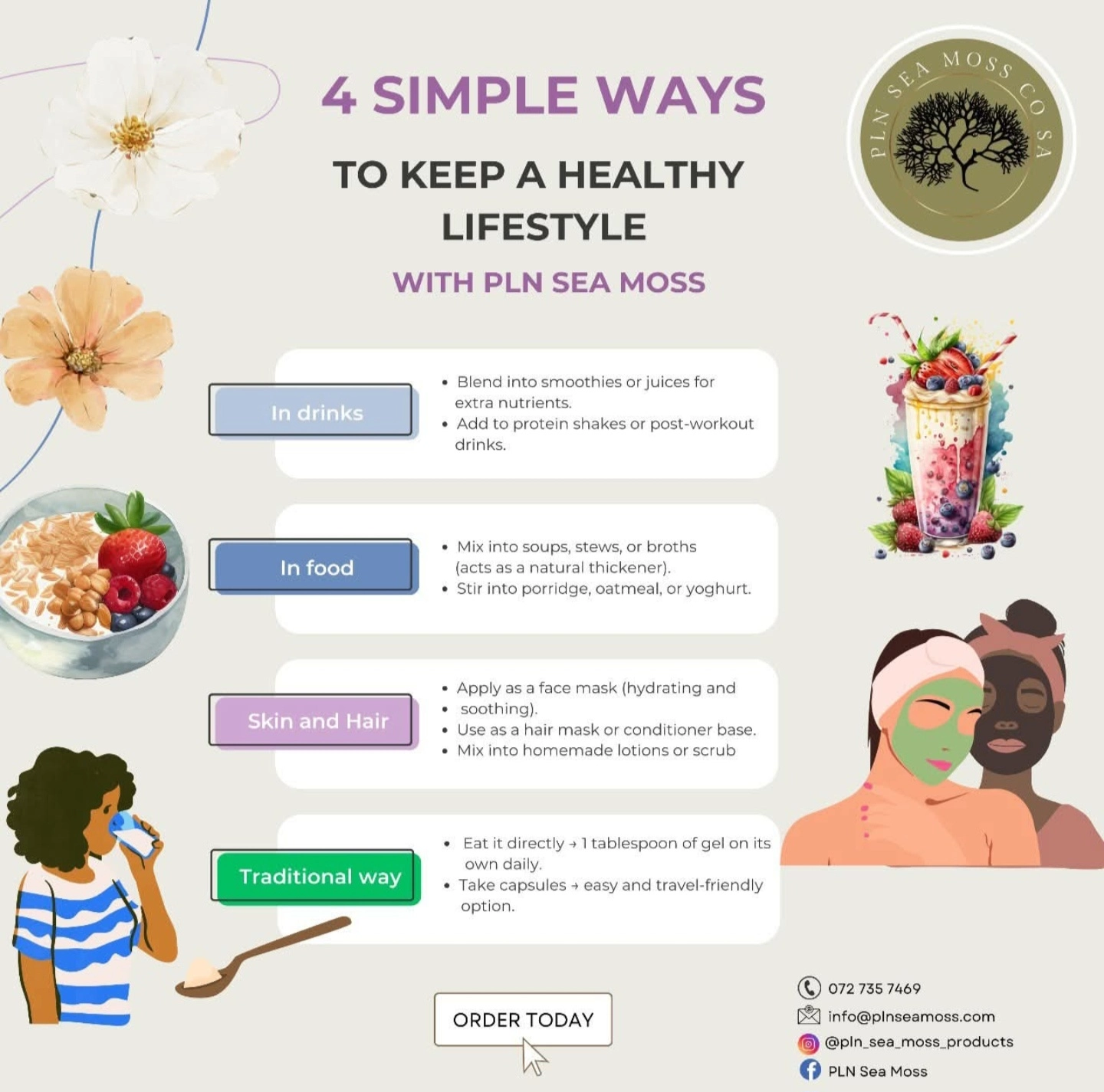 Discover the wellness and body-nourishing benefits behind every PLN Sea Moss Gel products we create. From sourcing the freshest ingredients to using sustainable practices, we craft our beneficial health products with love and care.